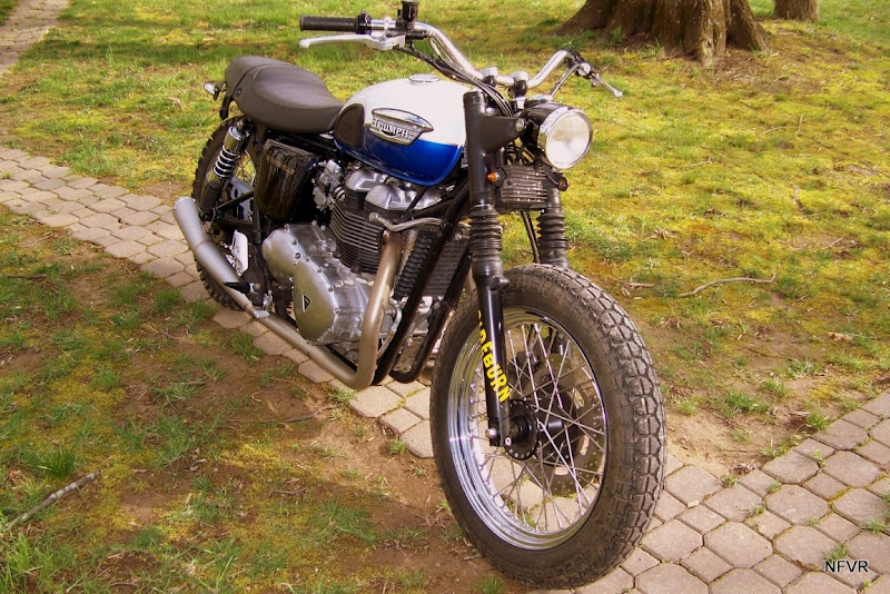 This is my kinda bike! Mike sent me these pics of his 06 Triumph Scrambler yesterday. He's been taking his time on it and the results are great. I love the stance of it but he didn't overlook the little things. Nice muscular looking ride.